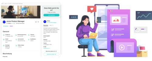 Eine gezielte Stellenanzeige ist nach wie vor einer der besten Wege, um passende Talente zu erreichen. In Zeiten von Fachkräftemangel zählt jeder Sichtkontakt. Mit jobwow präsentieren Sie Ihr Unternehmen attraktiv, stärken Ihre Arbeitgebermarke und sprechen Kandidat:innen direkt an.